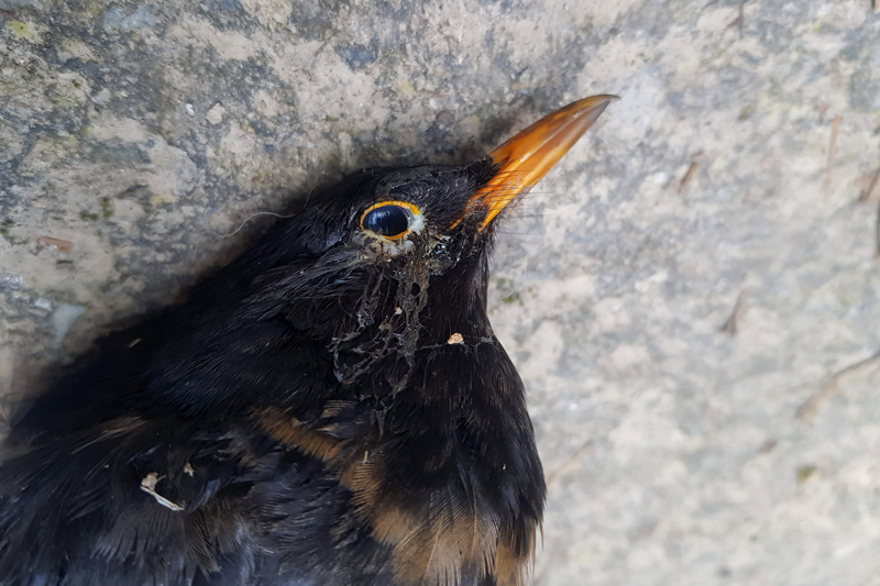 Mâle : Tout noir, avec le bec et le cercle oculaire jaunes.
