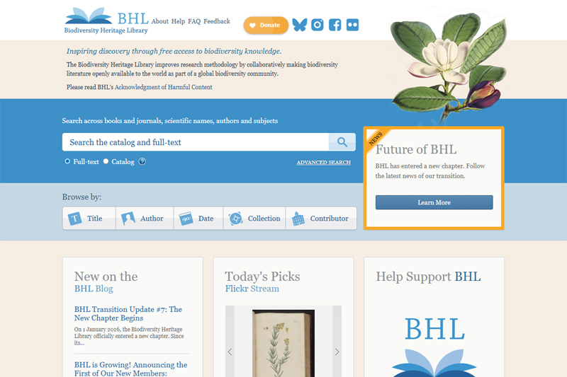 The Biodiversity Heritage Library improves research methodology by collaboratively making biodiversity literature openly available to the world as part of a global biodiversity Community.