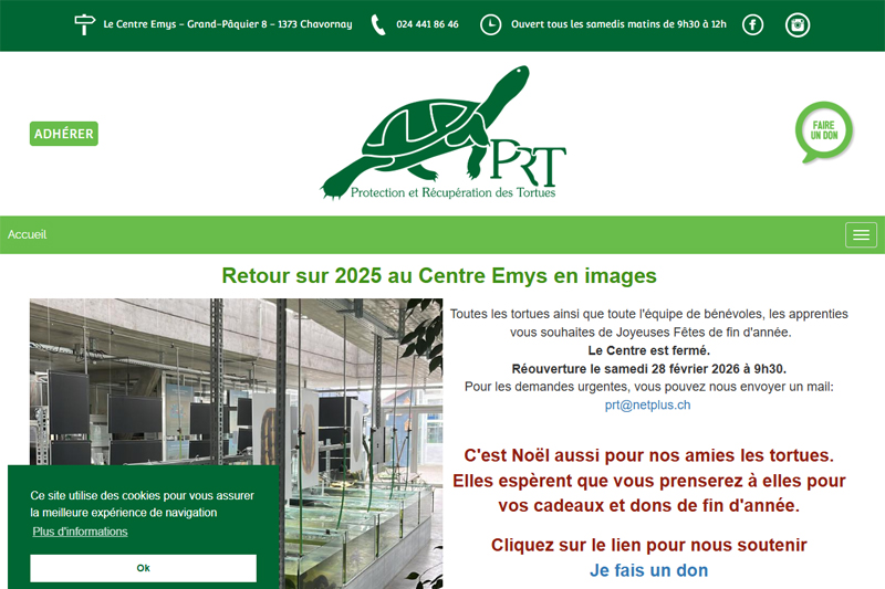 L’association Protection et Récupération des Tortues (PRT), active depuis 1994, a pour mission première de recueillir les tortues dont les propriétaires se sont lassés. Ces animaux sont souvent relâchés dans la nature si aucune autre solution n’est offerte. PRT donne une deuxième chance à ces tortues et évite qu’elles ne perturbent les écosystèmes où elles auraient été « libérées ». L’association est reconnue d’utilité publique depuis 2013. C’est l’unique centre de cette importance en Suisse.