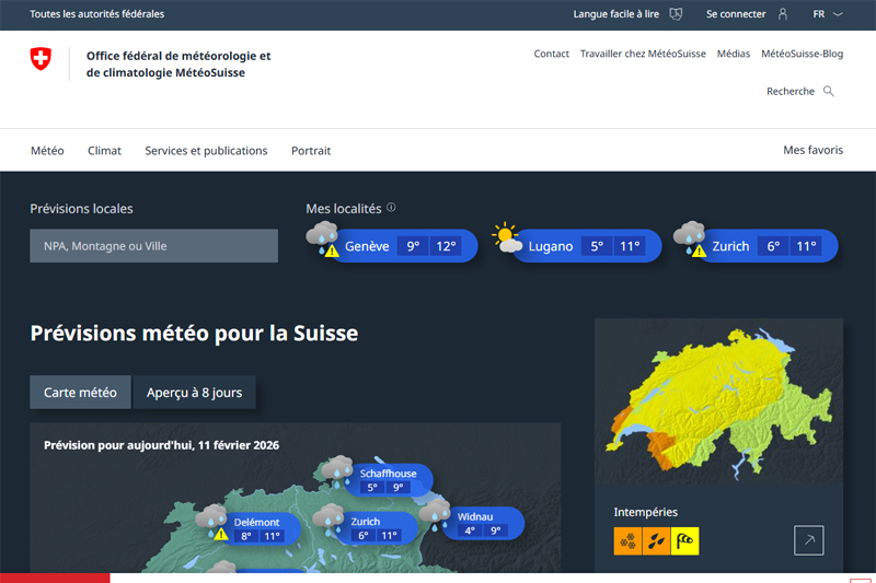 MétéoSuisse est l’Office fédéral de météorologie et de climatologie. Nous prenons le pouls du temps et du climat pour que vous ne soyez pas dans le brouillard.