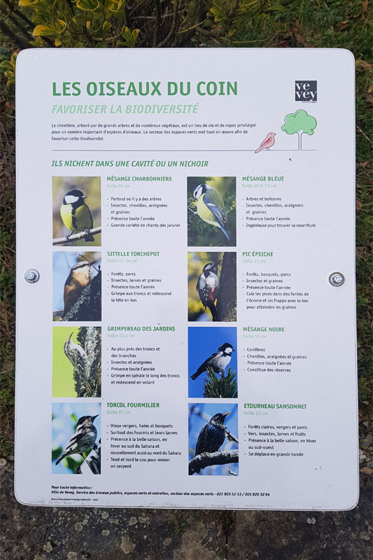 En collaboration avec la Fête de la Nature, la Ville de Vevey a créé des chemins didactiques afin de promouvoir la biodiversité en milieu urbain. Trois parcours sont proposés — court, moyen et long — et vous permettent de découvrir différents aspects des phénomènes naturels observables en ville. Les panneaux, très intéressants, vous guident notamment le long de la Veveyse, la rivière qui a donné son nom à la ville (ou est-ce l’inverse ?). Ces itinéraires offrent ainsi l’occasion de profiter d’une belle balade nature au cœur de Vevey.